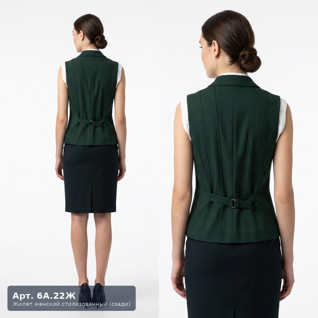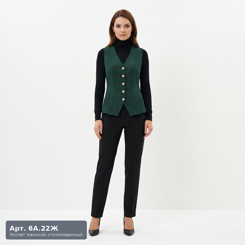 Женский форменный жилет 6А.22Ж — модель с широкими лацканами для создания утончённого образа персонала отелей и ресторанов класса люкс. Современный крой и качественная отделка подчёркивают статус заведения. Широкие борта придают жилету сходство с пиджаком, создавая более торжественный и представительный образ. Приталенный силуэт, скрытая застёжка, фигурная линия низа. Рекомендован для: метрдотелей и старших официантов, администраторов гостиниц категории 4–5 звёзд, персонала банкетных служб. Возможно изготовление в цветах вашего бренда с нанесением логотипа.