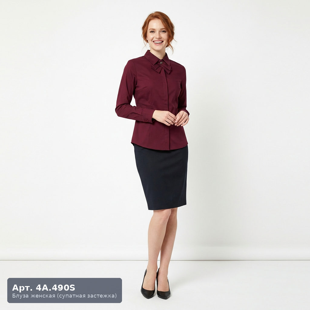 Женская форменная блуза 4А.490С — современная модель с асимметричным воротником. Нестандартное дизайнерское решение выделяет её среди традиционных деловых блуз и подходит для компаний с современной корпоративной культурой. Асимметричный воротник с одной стороной длиннее другой создаёт динамичный образ. Приталенный крой, застёжка на скрытые кнопки. Актуальна для: IT-компаний и digital-агентств, дизайн-бюро и творческих студий, модных розничных брендов. Создаёт образ компании, идущей в ногу со временем.